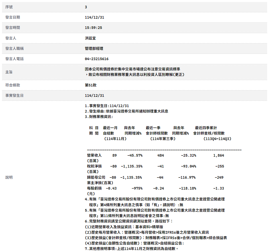 因本公司有價證券於集中交易市場達公布注意交易資訊標準 ,故公布相關財務業務等重大訊息以利投資人區別瞭解