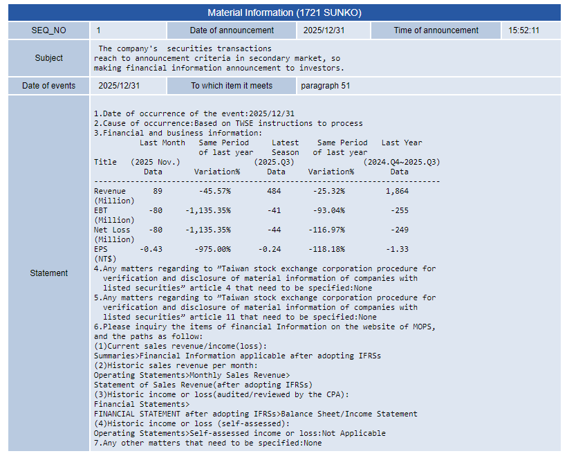The company's securities transactions reach to announcement criteria in secondary market, so making financial information announcement to investors.